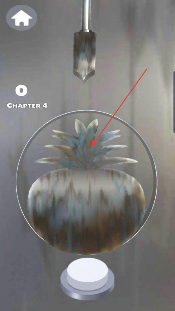 2、到Chapter4,针对菠萝造型金属,调整工具位置,点击按钮,雕刻菠萝叶片等细节。