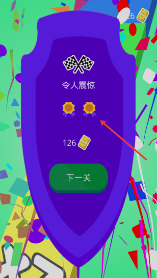 3、通关得金币(126),点击“下一关”,解锁新赛道,升级赛车性能(换挡速度、加速),挑战更高难度。