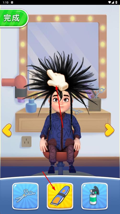 2、道具高效运用:初期用基础工具完成简单发型积累资金,解锁电推、染膏后尝试复杂造型,用定型道具提升发型精致度,提高客人满意度。