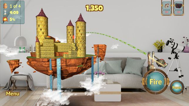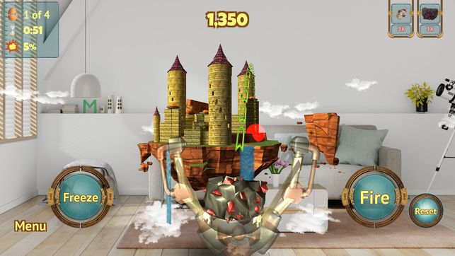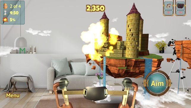 1、核心玩法要求玩家在限定弹药内造成最大破坏,通过移动设备从多角度观察城堡结构,长按蓄力可以提升射击威力。