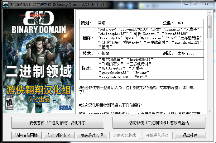 二进制领域汉化补丁是为该款游戏制作的中文汉化工具补丁,玩家可使用该工具轻松汉化该游戏,获得更好的游戏体验,喜欢玩的朋友快来下载吧!祝你游戏愉快!