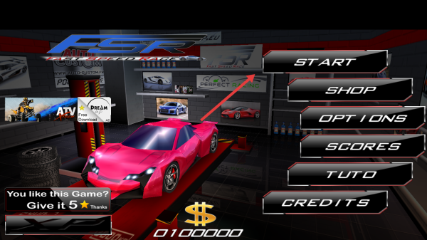 1、点击【START】进入模式选择,可看到车库内粉色赛车,开启游戏流程,准备体验赛车玩法。