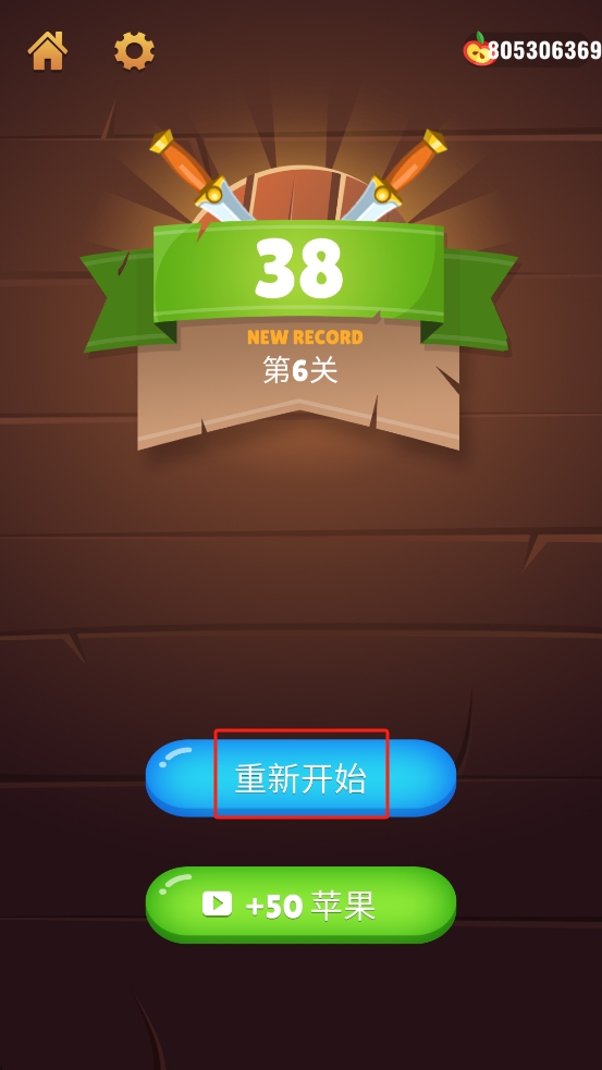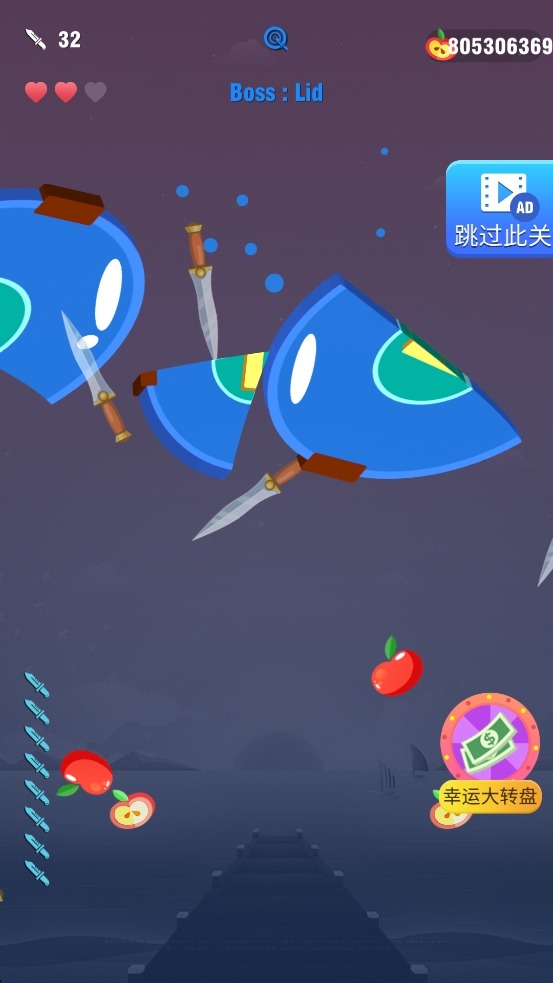 3、飞刀都用完了就结束了,成功通关后可获得金币等奖励,这些奖励能用来解锁新样式的飞刀和不同图案的圆盘。