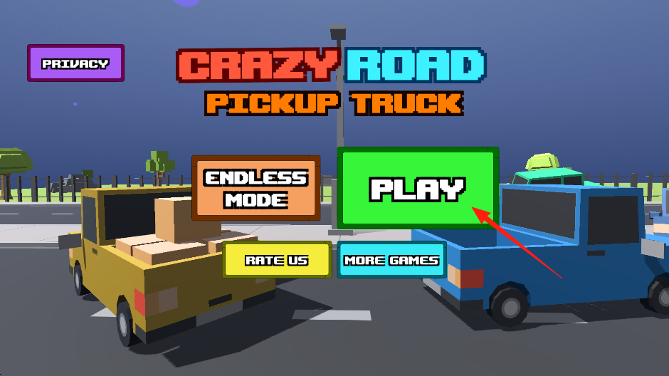 1、点“PLAY”进入卡车驾驶挑战,可选择“ENDLESS MODE”无尽模式,或直接开始关卡,通过选择模式,开启不同难度的运输任务,感受像素风格的卡车驾驶乐趣。