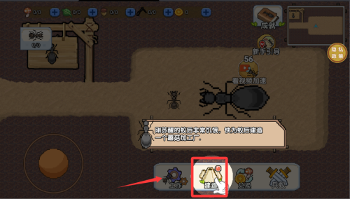 2、军事扩张环节,培育特殊兵种对抗敌对生物。火蚁擅长近战,弓背蚁可远程攻击,根据敌人类型搭配作战单位。