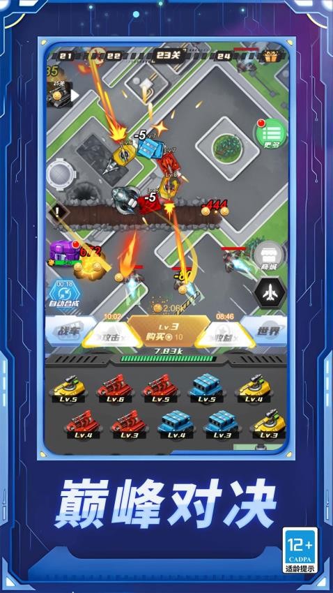疯狂坦克争霸战手机版带来热血沸腾的装甲对决体验。在硝烟弥漫的战场上,驾驭不同型号的战车展开激烈交锋。每辆坦克拥有独特的火炮系统和机动性能,需要精准计算弹道轨迹和装填时间。通过改装升级提升装甲厚度和火力强度,打造专属钢铁猛兽。逼真的物理引擎还原炮弹飞行轨迹,地形起伏影响射击精度。