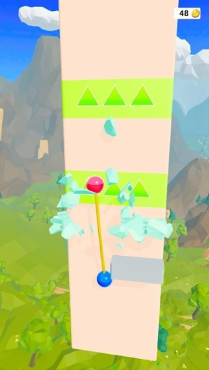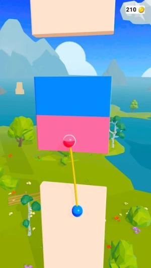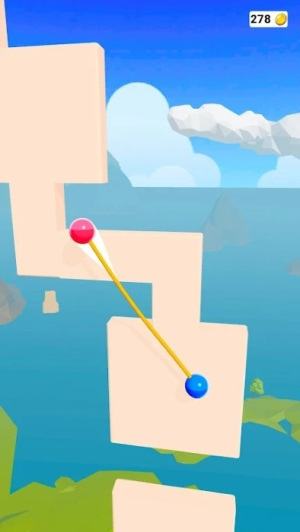 2、游戏创新性地将物理弹射机制与闯关挑战相结合,玩家需要精准控制皮筋长度和弹射角度,帮助双球协作抵达终点,这种独特玩法充满趣味性。