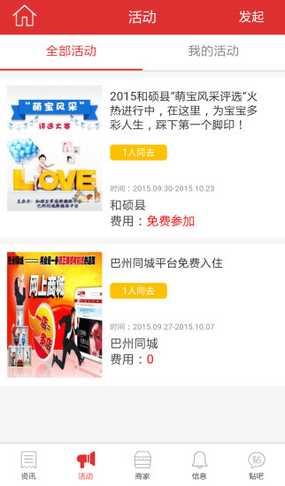 2.一手掌握巴州同城活动,有所喜爱轻松参加