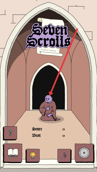 1、在启动页,点击角色,进入《Seven-Scrolls》游戏,查看“Score”“Best”等数据,准备地牢冒险。