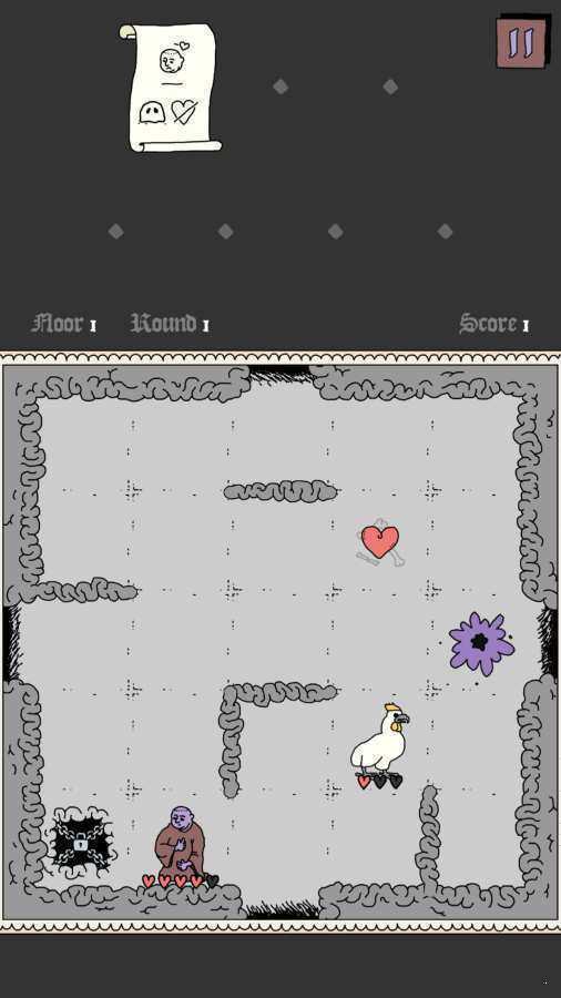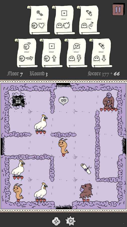 1、控制圣僧移动:通过滑动手指控制圣僧在地牢中移动,选择正确位置避开或消灭怪物,为探索创造安全环境。