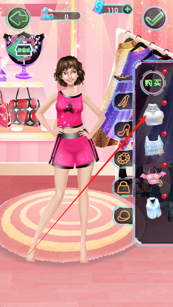 1、基础操作体系:点击屏幕选择服装与配饰,滑动屏幕浏览商品分类,双指操作缩放查看细节,通过组合操作完成复杂设计任务操作简单直观,让玩家专注设计思考。
