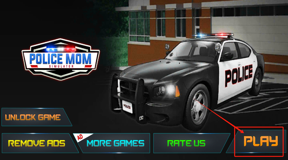 1、点击红色框里的“PLAY”按钮,即可开启警察妈妈模拟器的游戏之旅。