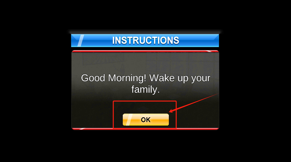 2、阅读完早安提示后,点击黄色的“OK”按钮,继续推进游戏进程。