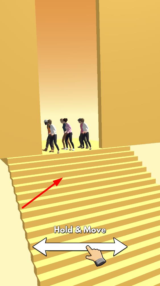 1、人群移动控制:通过简单操作引导人群向楼梯移动,无需精准操控每一个人,只需把握整体方向,看着他们自然地在楼梯间滚动,感受群体运动的独特魅力。