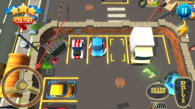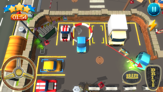 1、转换车辆完成泊车:玩家需在多个车辆间自由转换操控,先观察每辆车的位置与指定泊车点的距离,选择合适的顺序开始操作,操控时通过调整方向。
