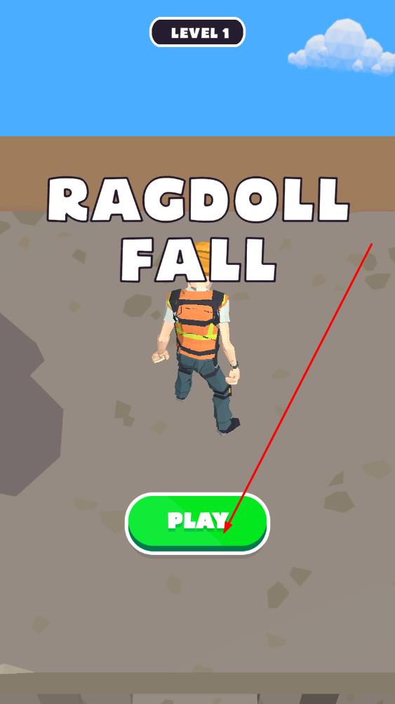 1、点击【PLAY】按钮,进入【LEVEL1】的【RAGDOLL-FALL】游戏,开始体验角色坠落挑战。