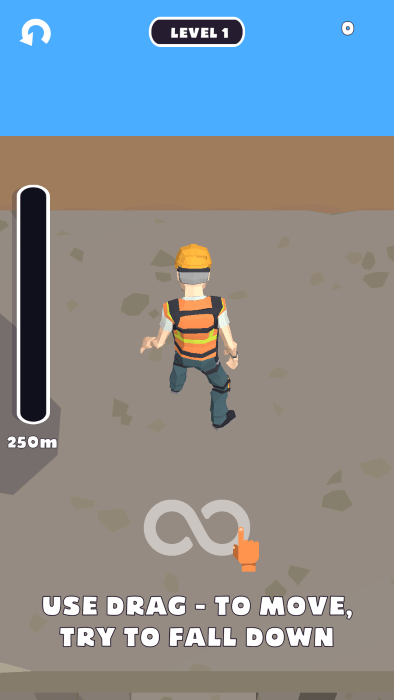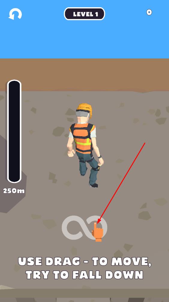 2、根据提示【USE DRAG - TO MOVE, TRY TO FALL DOWN】,拖动屏幕下方的∞符号,控制角色移动,让其靠近悬崖边缘,触发坠落。