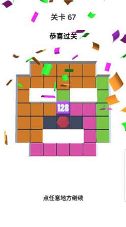 3、点击屏幕任意处继续,挑战更高关卡,利用策略规划合并顺序,追求更高分数与通关效率。