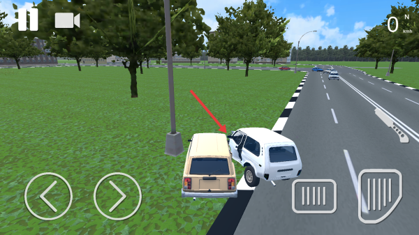 3、行驶中注意路况,若发生碰撞(如与路边白车剐蹭),调整方向继续完成驾驶流程。