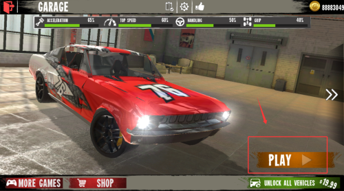 2、主界面选择PLAY按钮进入赛事模式,自由挑选竞速或碰撞等不同玩法类型。