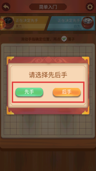 2、先后手确认:进入对局,选“先手”(黑方)或“后手”(白方),决定落子顺序。