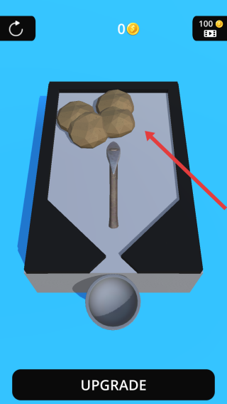 1、在操作台上,按箭头指引,将食材(如土豆)放入指定区域,准备合成或烹饪,点击【UPGRADE】可升级设备。
