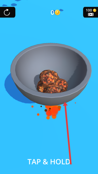 3、进入烹饪环节,将合成后的食材放入碗中,按提示“TAP&HOLD”操作,完成烹饪,获取游戏奖励。