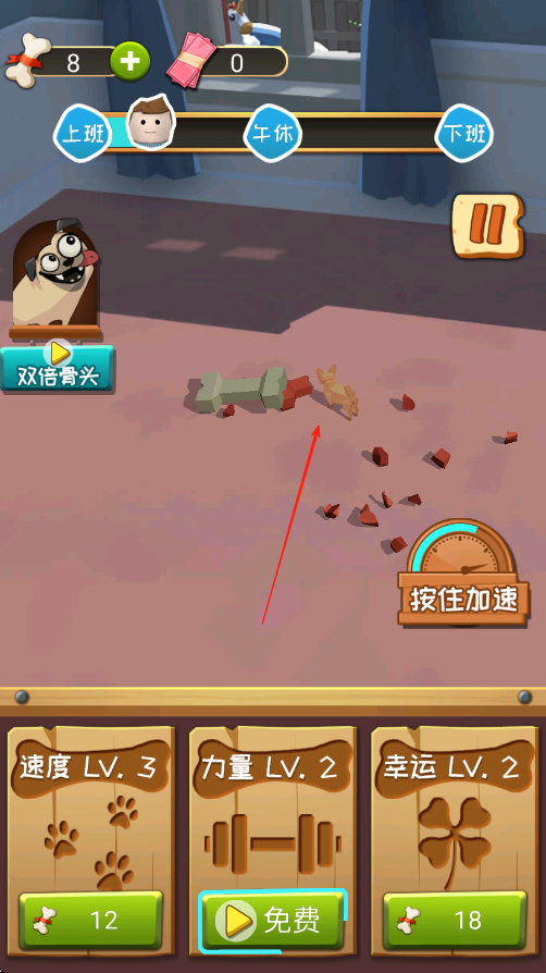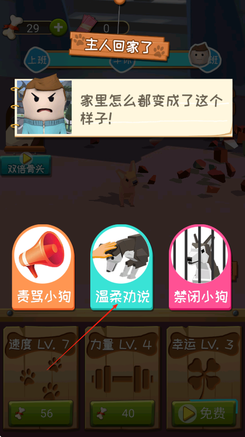 1、属性针对性破坏:根据所选狗狗的属性特点规划拆家路线,如力量型狗狗优先破坏大型家具,速度型则快速穿梭破坏小型物品,最大化利用属性优势提升效率。