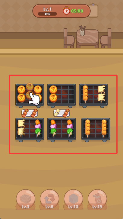 1、进入新关卡先观察布局,根据食材分布规划烧烤方案,标记关键目标和特殊区域。