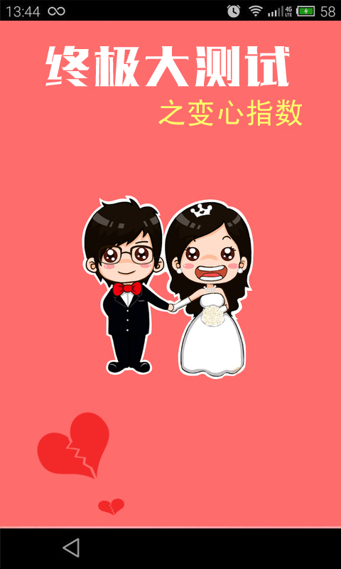 变心指数app是一款专门为用户设计的爱情指数测试应用,爱情为何物?在当今社会,随着时间的发展,心渐渐被都市的繁华与喧嚣而笼罩,爱情的长久在于物质和资本的需求。可是我们都希望自己的爱情是美好的,认为是长久的,其实这一切都是自己心里的慰藉罢了。现小编为用户提供一款变心指数测试应用,在你无聊的时候和男友或女友试玩下,也是一种乐趣。望不要太听取软件内容,毕竟爱情不是测试可以左右的,欢迎下载!