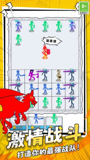 1、游戏以极简火柴人形象作为战斗主体,通过流畅的连招系统设计,为玩家呈现爽快刺激的格斗体验,展现精准的操作技巧。