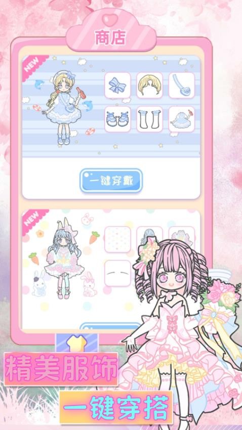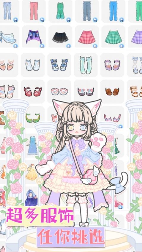 2、海量服饰自由搭配激发创造力。内置数百种上衣、下装、配饰等可解锁单品,支持颜色调整与风格混搭,通过不同组合能呈现日系森女、复古港风、未来科技感等多样化造型。