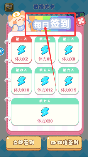 1、每日上线第一时间要查看您的签到奖励哦,得到大量体力,方便后续游戏体验哦。