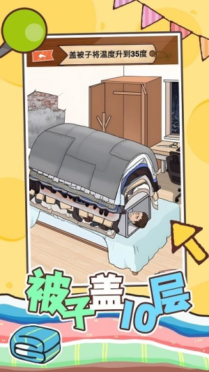 3、玩家可以通过完成关卡获得解锁新被子的机会,收集各种款式和图案的被子,如卡通图案、几何图形等,增加游戏的收集乐趣和个性化元素。