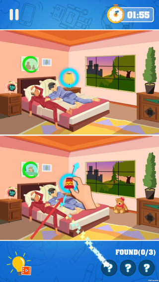 3、反应与眼力的双重考验:核心玩法聚焦“找不同”,挑战玩家的观察力和反应速度,在限定时间或步数内找出差异,带来紧张又有趣的闯关体验。