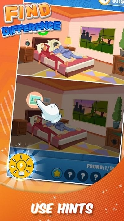1、找不同核心玩法:每关会呈现两张相似图片,玩家需仔细对比,找出其中的差异之处(如物品位置、颜色变化、细节增减等),点击差异点即可完成部分任务。
