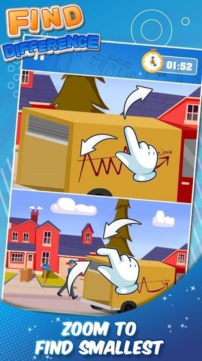 3、拖动屏幕,放大游戏画面,清晰画面,并点击不同之处完成任务。