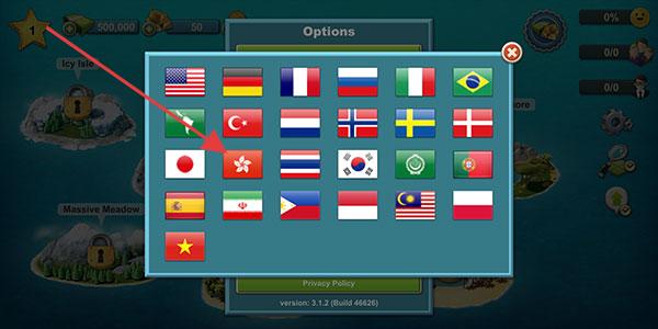 3、这时候会展开许多旗帜,我们选择第三排第二个【香港特别行政区区旗】即可切换为中文。