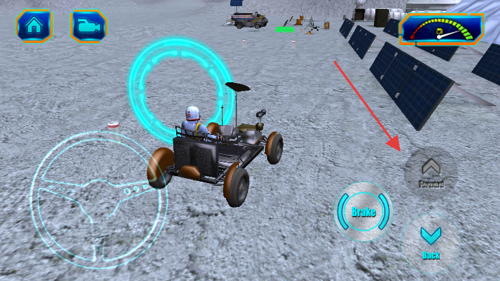 3、点击右侧【Forward】按钮,驱动月球车前进,探索月球场景。