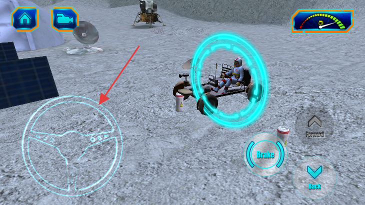 2、用左侧虚拟方向盘,操控月球车在月球表面转向。