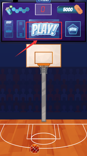 1、游戏启动后轻触主界面显眼的PLAY按钮,即刻进入三分球投篮挑战环节。
