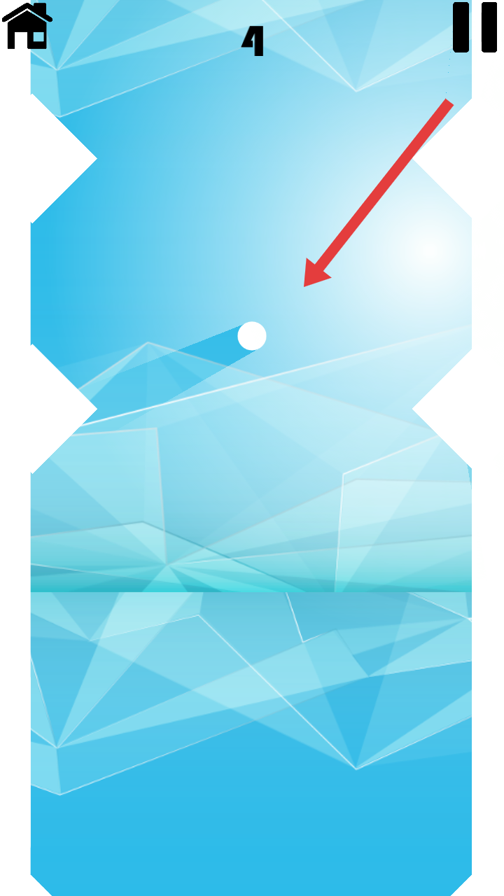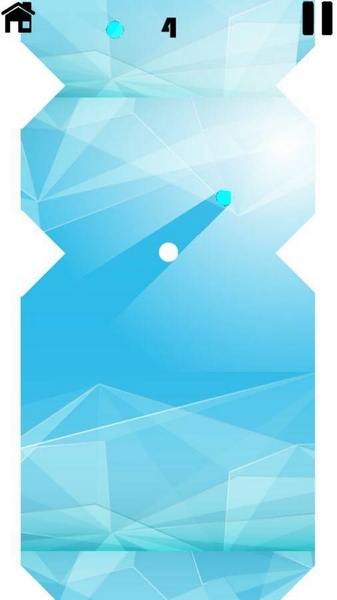 1、操控白色小球在蓝色几何场景中移动,沿路径避开障碍,逐步推进,提升上方计数(初始为4)。