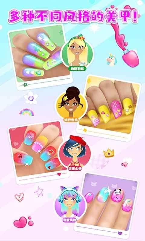 1、视觉美学国度:精美细腻的场景与角色设计,细腻的光影效果与绚丽的色彩搭配,随主题变化的背景音乐,全方位打造极具吸引力的美甲世界,让玩家沉浸在创意与艺术的氛围中。
