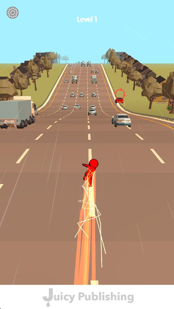 1、跑酷对决结合:在赛道上操控英雄奔跑,灵活跳跃或转向躲避障碍物,遇到对手时及时出拳攻击将其击退,保持前进速度的同时赢得对决,向终点冲刺。