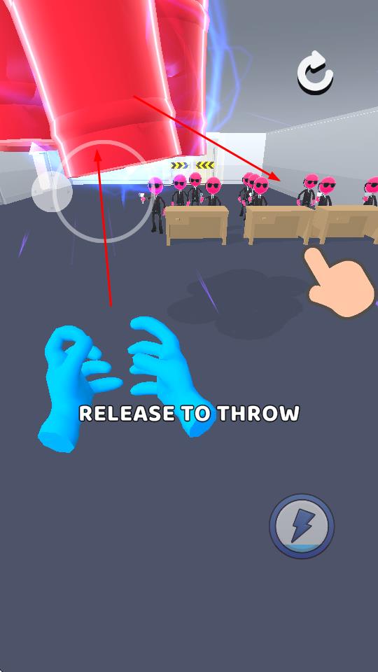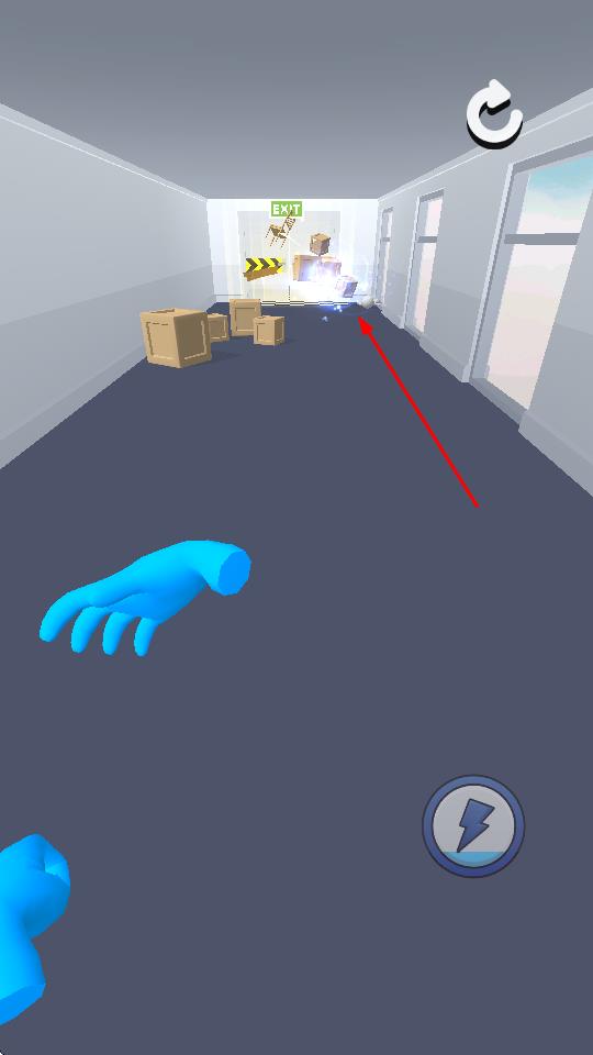 1、“投掷操作”,滑动屏幕操控蓝手,投掷箱子、炸弹等道具,瞄准目标(EXIT门、敌人)。