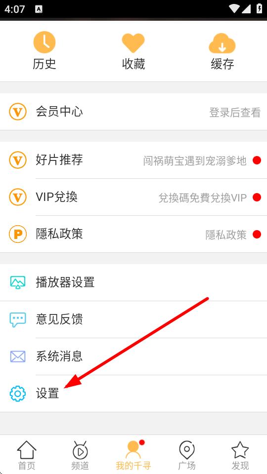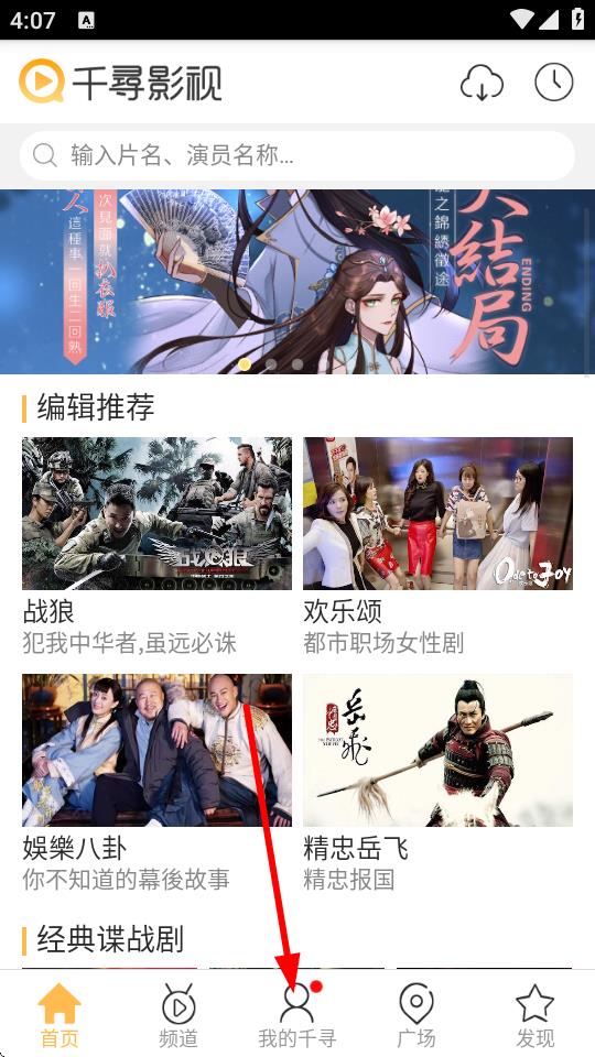 1、打开千寻影视app,点击底部导航栏中间的我的千寻选项。