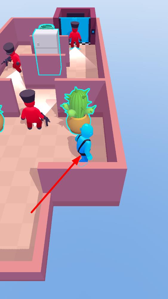 2、关卡中灵活变身,躲避敌人搜查与攻击,找到合适的武器武装自己,针对不同敌人制定策略,逐步推进解锁新玩法。