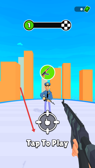 1、开局准备:点击“Tap To Play”,进入关卡,操控枪械瞄准敌人(如警察角色)。
