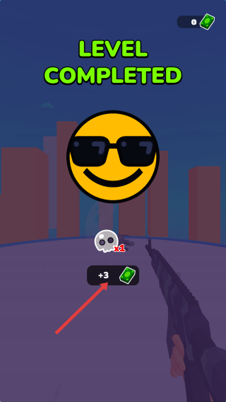 3、奖励结算:成功通关(LEVEL COMPLETED),获得金币奖励(+3),解锁新关卡继续挑战。