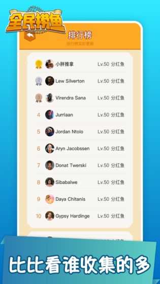 3、排行榜竞技与实时排名:设有排行榜功能,实时更新所有玩家的排名,以收集鱼类的数量为竞争指标,激发玩家的收集热情与竞技意识,增加游玩的持续动力。